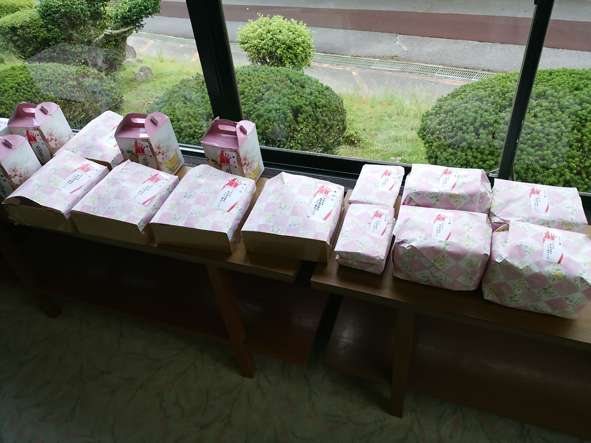 参加の皆さん 恵那市特産の賞品